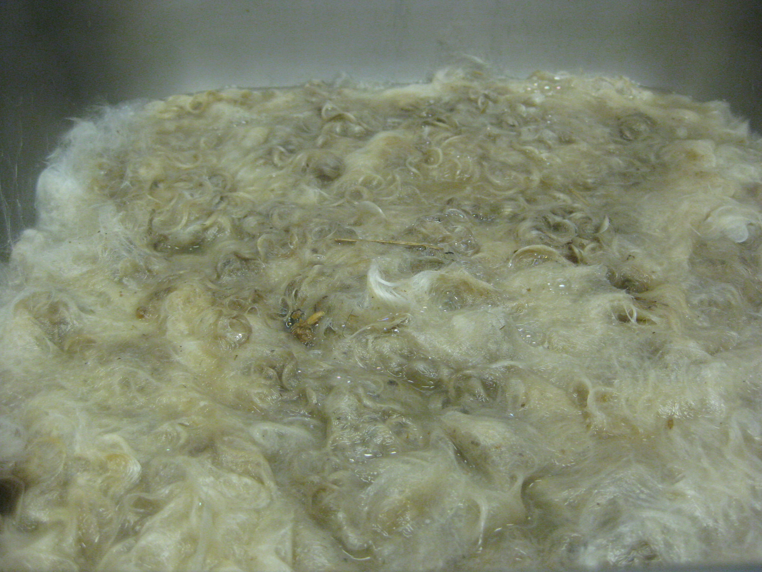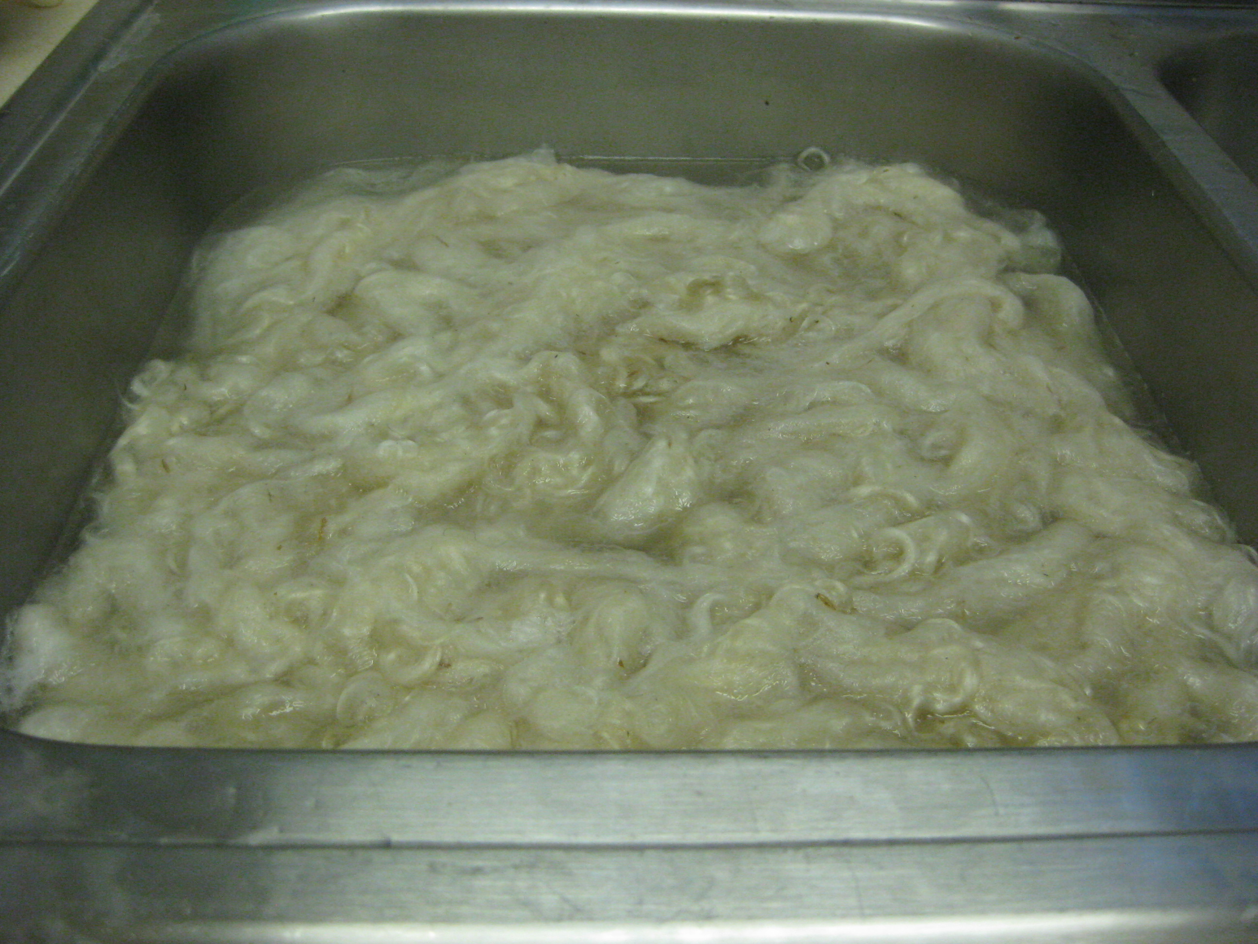 The now clean fleece is drying. Once it’s completely dry (no carding while damp!) I’ll card it and finish picking out those last small pieces of debris.