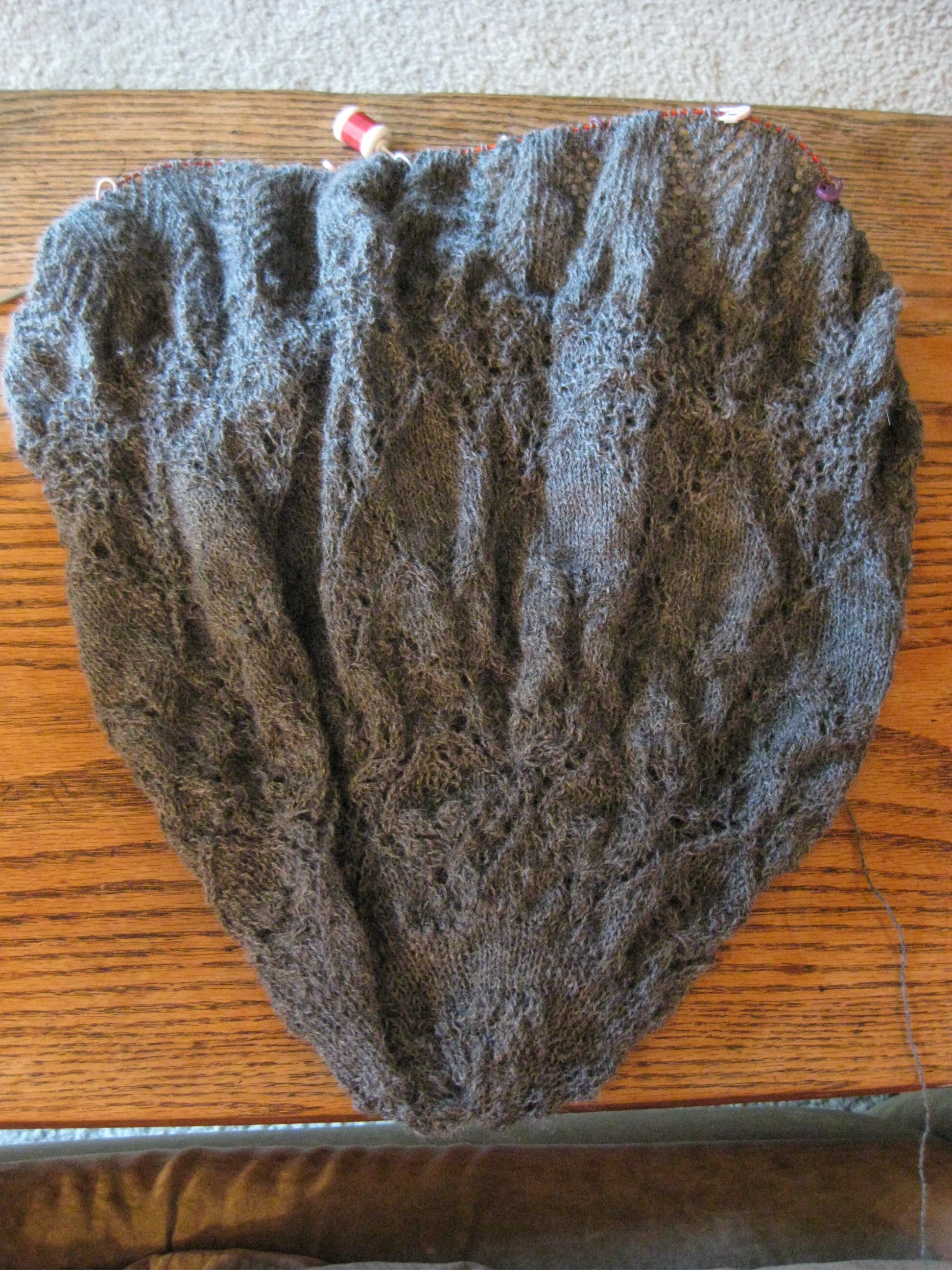 My first year teaching may be finished but the Evenstar shawl is a work in progress. I have about 50 rows before starting the edge (which will also take ages because of those beads). The hope is that I’ll finish before Hubby and I leave for our honeymoon in 10 days. Even as I type this I realize there is no way it’s going to happen.