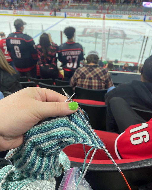 My fiancé and I recently took some time off for vacation. We started Thursday night with a hockey game I’d won tickets to the Hurricane and Oilers game through work. I took my knitting but only managed one row. Not surprisingly, it was cramped in the stadium seats.