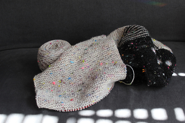 Loops is a relaxing project. I’m almost done (about 3 inches to go!) and I’ll be sad to have finished. The yarn is wonderful. Black and white could be boring but all the pops of color make working with the yarn fun and interesting.