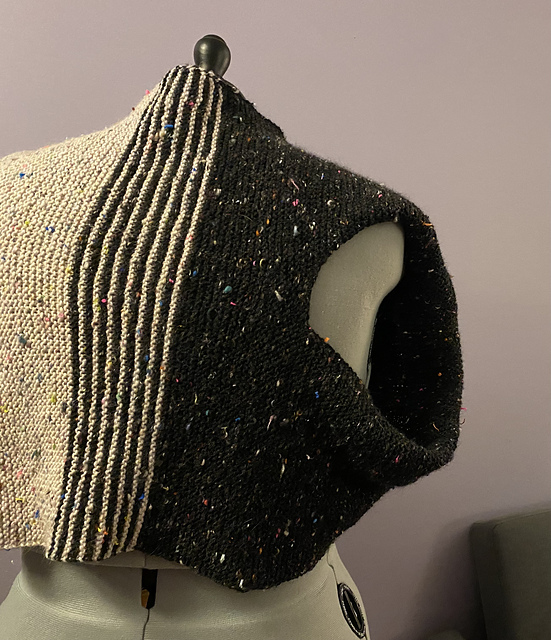 However, you’ll noticed the strategic picture taking that’s cut off the second armhole. When I went to graft the two live ends together I accidently twisted the piece. Of course I didn’t notice until after I had finished and woven in my ends. So now I’ve put Loops in time out. I’ll go back and unpick to fix it but it needs a little sit down first. I tried putting it on anyway and I’m also just not sure if I’d wear it. So it’s going to be hard to go back and fix something that wouldn’t be getting used. I’m more about the knitting part than the wearing part.