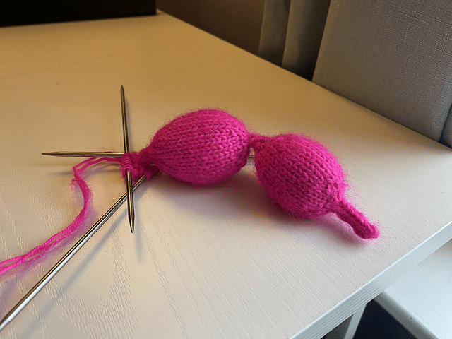 I did start on my next project, Snooker the Balloon Dog by Jamie McCanless, but I didn’t make much progress before my mom made an emergency knitting request.