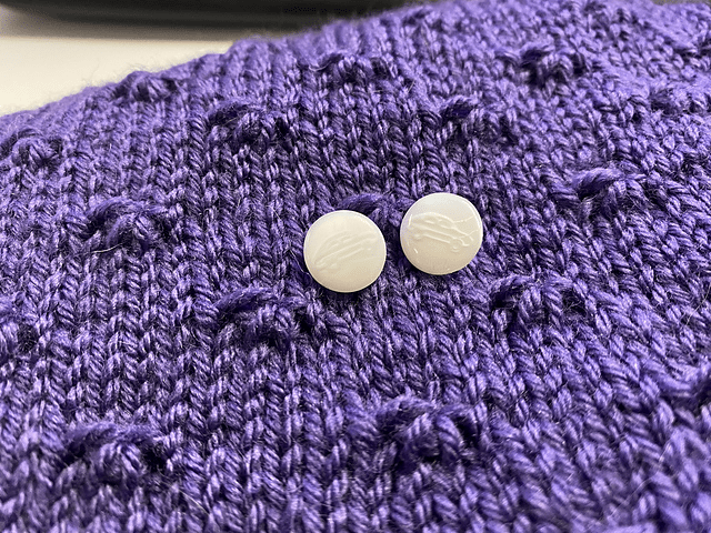 The Wildflower Tunic is officially fully complete. Last week I did the crocheted button band and added the buttons. However, there was an issue with the buttons. I went by my local yarn store and picked out some simple white buttons with little swirls on them. When I got back to my desk at work after picking them up I looked again and realized the swirls were tiny cars. Parking at the local yarn store (Warm ‘n Fuzzy) is terrible so I was not going to go back. Nobody looks that closely at children’s clothes anyway.