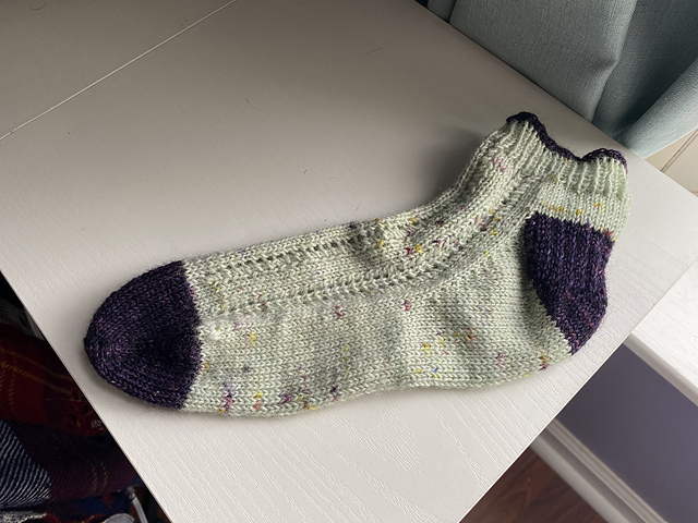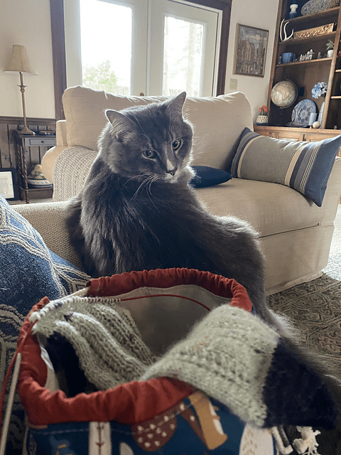 I got Socks from the Toe Up as a Christmas gift in 2022 and this is my first time working on a project from it. My gauge wasn’t right on so I just used the Dead Simple Lace sock pattern as inspiration and modified it to fit the stitches I had on my needles. It is dead simple but satisfying and nice looking. Normally I knit socks two at a time but this time I opted to go with one at a time to make them easier to travel with. I’ve been feeding my parent’s cat while they’re away and keep carrying the socks back and forth. Since they’re gone for so long I’ve been trying to spend a decent amount of time with him. The socks have been a perfect project for this.