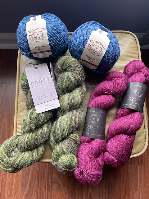 My parents have returned from Scotland and brought me a gift as thanks for taking care of the cat. I’m delighted with it! I knew they had found a yarn store that was open but didn’t realize the extent of the gift I’d be getting. It’s all so beautiful! The pink is soft and silky and the green and blue are both tactile and kind of crunchy in the best way. I have some vague plans for everything but I have a lot of projects in my queue so I’m not sure when I’ll get to these. I look forward to finding the time.