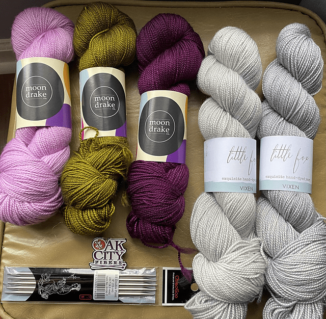 The yarn crawl was fun! We started at my favorite local yarn store, Warm ‘n Fuzzy, that I’ve mentioned before. The owner is very kind and they recognize me at this point. We also got to visit Knotty Sheep, Oak City Fibers, Hillsborough Yarn Shop, Yarns Etc, Freemans Creative, and Great Yarns. All the yarn stores are special and wonderful in their own ways but the new discovery was Oak City Fibers. The owner, Glen, is friends with some of my friends and was very personable. I went in with a plan to find yarn for Travel Mode 2.0 by Susanne Sommer and did just that. The colorful yarn is from Oak City Fibers and the grey is from Freemans Creative. I also picked up some double points that I found were missing from my collection from Warm ‘n Fuzzy and was given a pin also from Oak City Fibers.