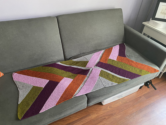 I’m actually hoping to finish the body this week. It does have an i-cord boarder which I’m slightly dreading but I think will really help make it look finished and professional. Do I block before adding the boarder or after? I haven’t decided yet. I’m a bit worried about some of the colors bleeding because the orange and purple both leave stains on my fingers when I work with them. But that’s why color catchers exist.