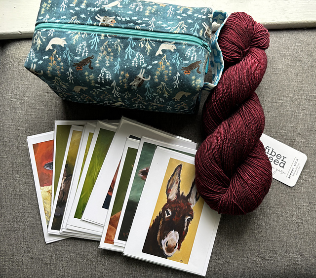 I was pretty conservative with my purchases this year. On Friday I got a new bag, some yarn for a pair of socks for my husband, and cards from my favorite artist at the event (Ken McNeill). Saturday I was good in the morning but when I went back to pick-up my shawl I did buy grey yarn for the boarder and some minis for my Jelly Roll blanket. I also got an NC themed stitch marker that I’d been eyeing that morning.