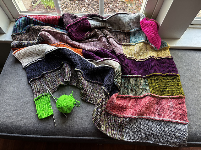 I’m still really enjoying knitting on the Jelly Roll blanket. It’s gotten big and difficult to carry around but it’s growing at a stratifying rate and picking out colors for the next stripe is always fun. I’m not sure what’s going to come after this lime green though.