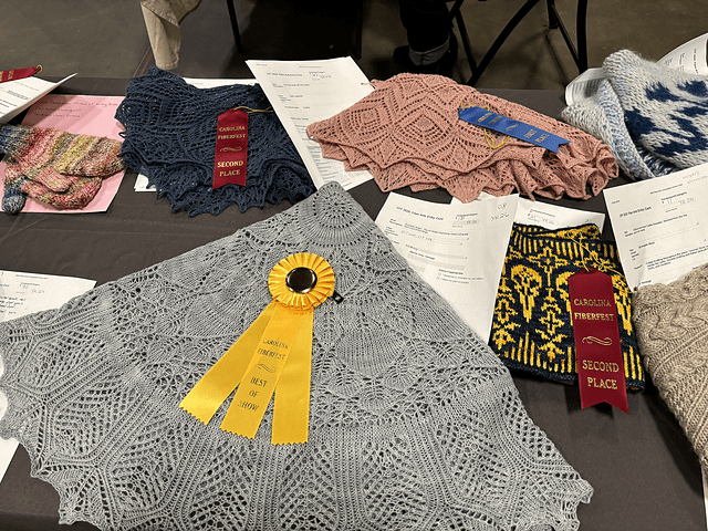 The Carolina Fiber Festival was a success all around. First off, my Shieldmaiden Shawl won first place.