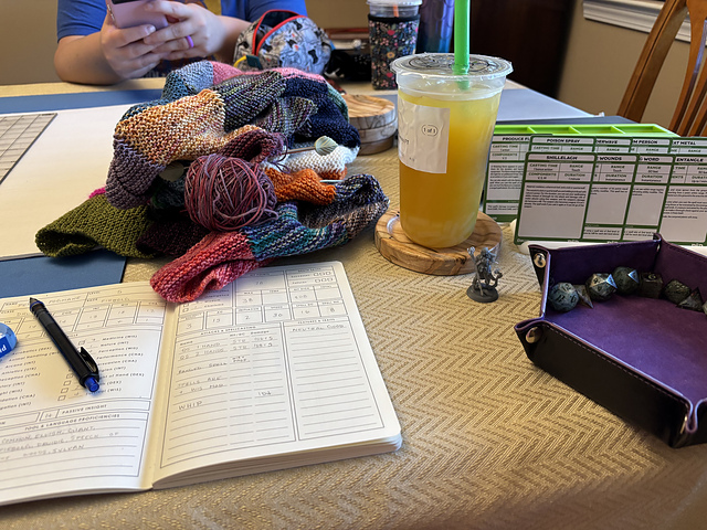 We had our somewhat regular D&D game with friends and it was the project that got brought along to be worked on. We didn’t kick any butt this session but we did get to explore a neat castle. If you’ve never explored a castle and knit at the same time, let me tell you, it’s pretty great.
