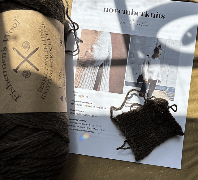 I also swatched for the Eun Sweater and got gauge on the first try! I started knitting the collar last night and have just a couple centimeters to go before folding/starting the body.