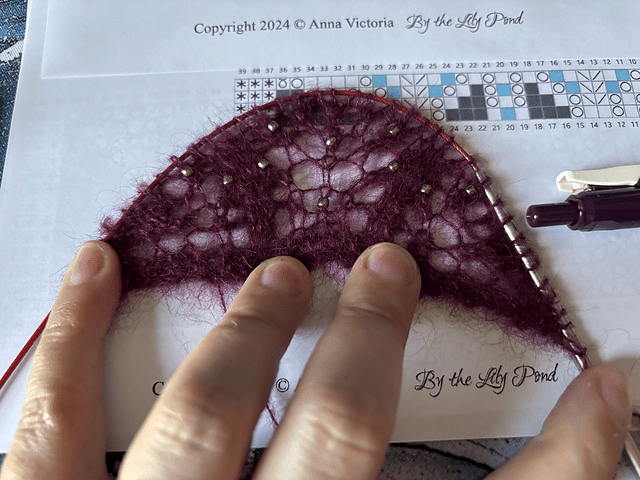 I was originally thinking of knitting the Sadie Top by Woozy By Céline but when I was browsing around Ravelry looking for ideas I found the Dafina Beaded Lace Shawl by Anna Victoria and fell in love. It’ll be an excellent competition piece. I’ve already cast on. It took three tries to get the right gauge but I got there eventually. It’s going to be great.