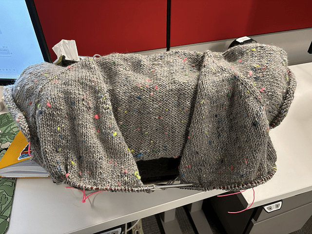 In sweater news, it looks exactly the same even though I’ve been knitting on it constantly. It’s a pleasure to sit and work on in the evenings when hubs and I are watching something or I’m listening to an audiobook (Quicksilver by Callie Hart right now) but I recognize how far I have to go and am starting to feel a bit daunted.