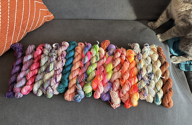 It’s a shock how fast this month has gone! It’s been fun opening the advent everyday and ooh-ing and ahh-ing over the brilliant colors my friend has dyed. I’ve taken one picture with my rankings of the colors (so far) for her.